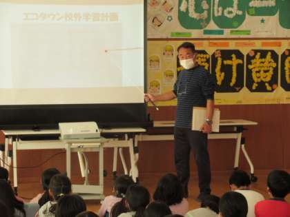 4年生では、11月10日に予定されている校外学習に向けて話を行いました。子供たちは、少し見通しをもちながら楽しみにしている様子でした。8月に挑戦した「環境チャレンジ10」を生かしながら、環境についてさらに意識を高めました。