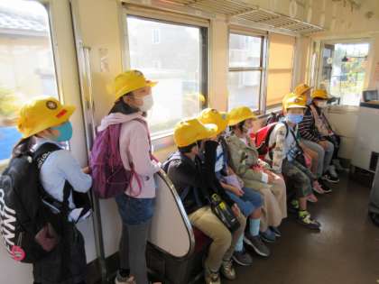 地鉄電車に乗って、富山駅まで乗り物探検に行きました。みんなで乗る電車にどきどき。