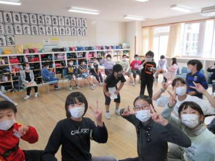 今日は、集会をしました。クラスのみんなで何をするか話し合い、「フルーツバスケット」「爆弾ゲーム」「王様の命令」「ぞうきん落とし」をしました。クラスのみんなで楽しく遊び、満足そうな子供たちでした。