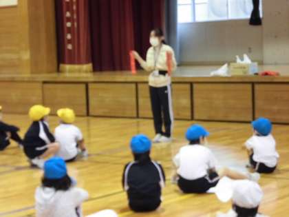 タグを付けて、宝を運びます。タグをとられずに、ゴールまで運べるでしょうか?子供たちは少しずつ作戦も考え始めているようです。