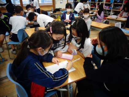 4年生は、グループで集会の内容を相談していました。
