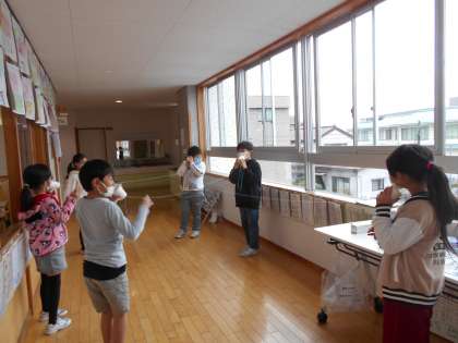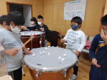 理科の学習では、音について勉強しています。糸電話を実際に使って糸が音を伝える仕組みや、音楽室の楽器の仕組みを楽しく調べています。