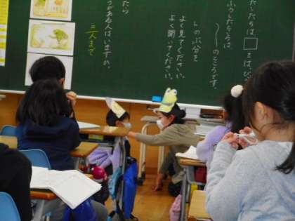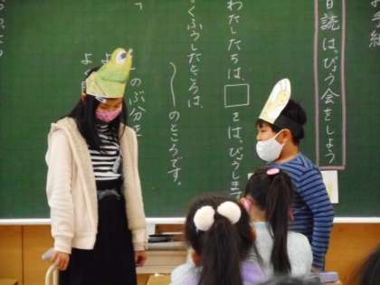 今日は2組で音読劇発表会を行いました。同じ場面でも、ペアによって様々な工夫があり、振りや声で登場人物の気持ちを伝えようとしていました。