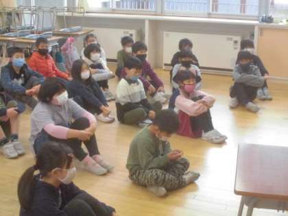 4年生は、今年度初めてとなる読み聞かせをしていただきました。久々の読み聞かせで真剣な表情でじっくりと聞いている様子が印象的でした。