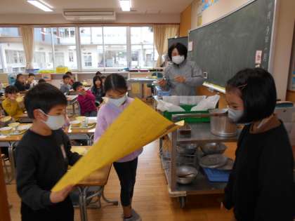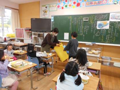 子供たちが練習している読み聞かせの招待状を1年生さんに持って行きました。今週は1,3組、来週は1、2組に分かれて読み聞かせをします。