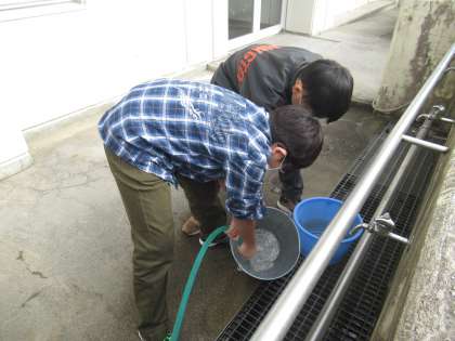 今日は、「流れる水のはたらき」の実験で使った実験装置を洗ったり、土をグラウンドに戻したりと、片付け作業を行いました。みんなで分担し、協力したことで、あっという間に片付けが終わりました。