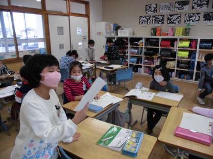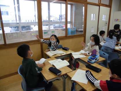 国語科の学習で、グループでお友達の相談にのり、話し合う学習があります。子供たちは、「家族のお誕生日のプレゼントは何がいいか」「兄弟とけんかしないためにはどうすればよいか」「九九を早く覚えるにはどうしたらよいか」など、相談していました。グループのみんなに相談できて、「うれしかった」「すっきりした」と感想を言っていました。
