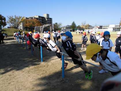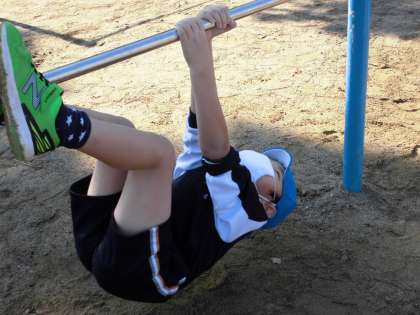 今日は、晴天に恵まれ、元気に外で鉄棒をしました。少しずつ、できる技が増えてきました。もっといろいろな技に挑戦していきます。