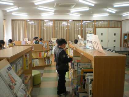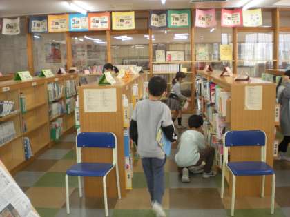 今週は、親子読書週間です。図書室で、いろいろなジャンルの本棚を巡り、3冊の本を選んで借りました。そして、早速、家に持ち帰りました。家でじっくり読んだり、家の人と一緒に楽しんだりして、本となかよしになってほしいです。