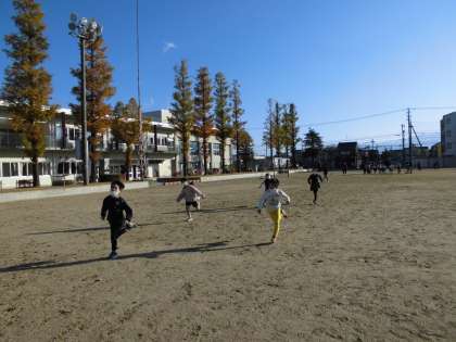 今日は朝から気持ちのよいお天気でした。みんなで、パワーアップtoubuを頑張りました。子供たちは、思い切りグランドを1周して、「まだ走りたーい」「気持ちいい」と話していました。