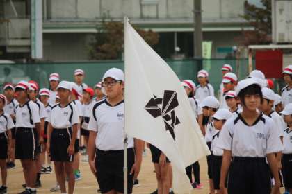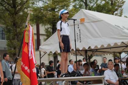 開会式には、若草委員会の児童が代表の言葉を述べました。これから始まる運動会に、どの子も真剣な表情で臨んでいます。