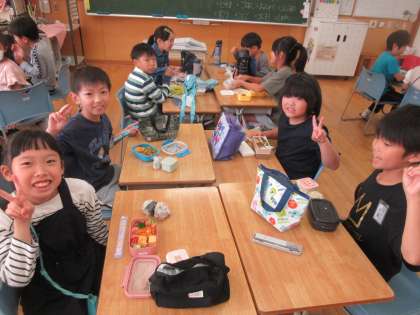 直前にも練習をして気持ちを高めました。その後、おいしいお弁当を食べて、元気に出発しました。