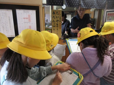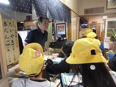 「甘味処わかば」へ探検に行きました。疑問に思っていることを質問しました。たいやきの作り方やお店の人の願いを知ることができました。