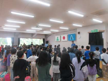 4年生は、初めての宿泊学習です。出発式では、校長先生の話を真剣に聞いていました。入所式では、お世話になる施設の職員の方々へ元気に挨拶をしました。自分のめあてを意識し、時間やルールを守りながら2日間がんばってきます。