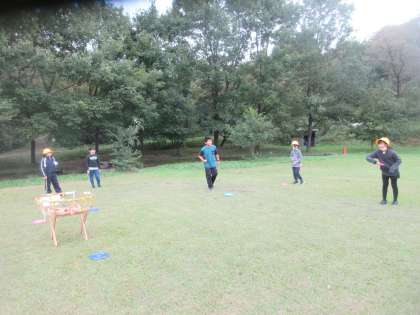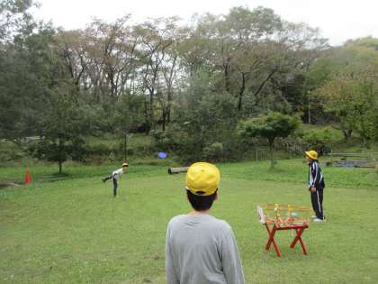 1日目の午前中は、フライングゴルフとグランドゴルフを行いました。なるべく少ない打数・投数で、ゴールのかごにいれます。