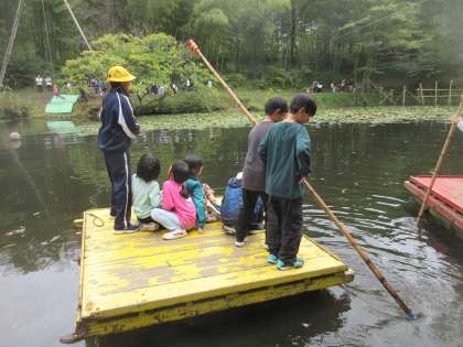 1日目の午後は、池遊びをしました。普段味わうことができない自然の遊びに子供たちは興味津々でした。池に落ちないかドキドキしながら、夢中で遊んでいました。