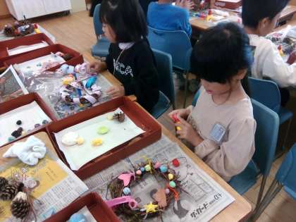 今まで大切に育ててきたアサガオの蔓を使って、リースをつくっています。