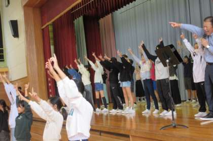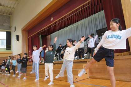 今日の『こころが今日も笑顔集会』に向けて、「こころが今日も笑顔」や「きときと夢体操」の練習をしてきた子供たち。