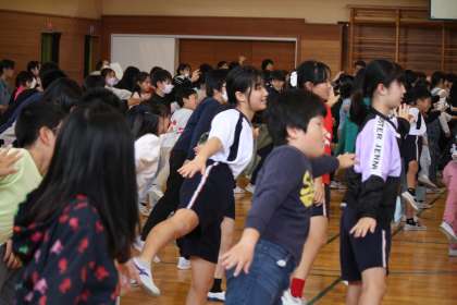 高原さんと一緒に、きときと夢体操を全校で元気いっぱい踊りました。