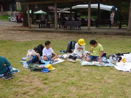 食事が終わると、学級の仲間と輪になってお弁当を食べました。「おいしい!」とても嬉しそうにご飯をほおばっていました。準備していただき、ありがとうございました。
