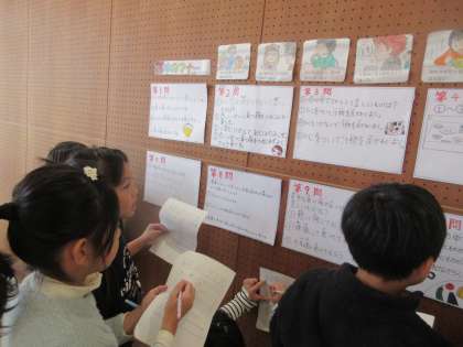箸や茶碗の持ち方や食事のマナーについて考えました。給食の時間にもマナーを意識できるといいですね。