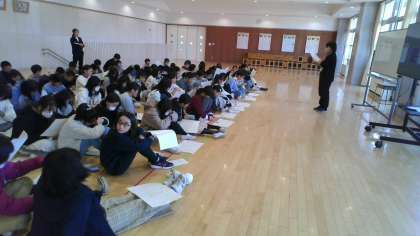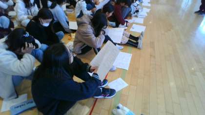 子供たちが挙げた卒業式の曲の中から歌いやすさや歌詞の雰囲気を考え、6つの候補を決めました。各クラスで6つから3つの曲を選び、投票数が多かった3つに候補を絞りました。今日は、3曲の歌詞の意味や伝えたい思いを考えた上で、最も歌いたい曲を一人一人が考えて投票をします。