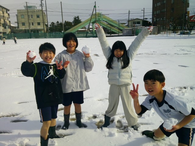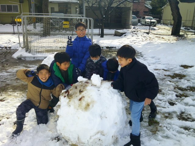 子供たちは、休み時間に楽しく雪遊びをしていました。