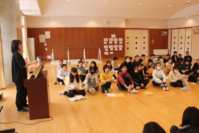 身体を動かしながら、歌い出しのタイミングを合わせる練習をしました。