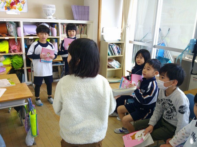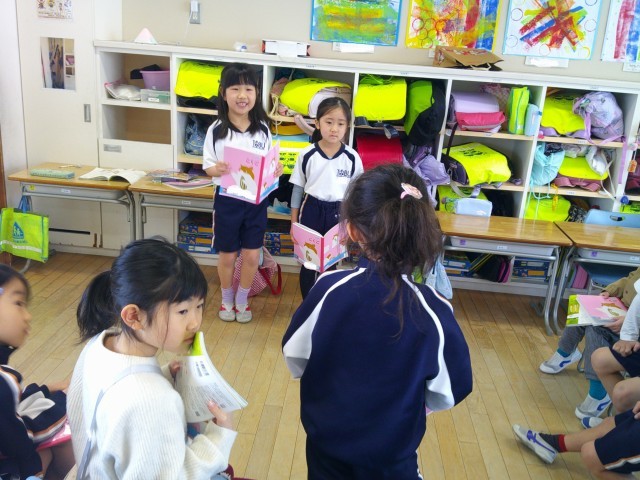 「学校にあるもの」というお題でペアでクイズを作り、友達とクイズ大会を開きました。「それは、教室の中にありますか?」など進んで質問している姿も見られました。どんなヒントを出したらよいかを一生懸命考えていたおかげで、クイズ大会は大成功でした。