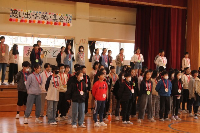 6年生の卒業を祝う「思い出・お祝い集会」が開かれました。