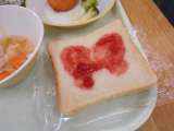今日の給食は、食パンとイチゴジャムが出ました。ジャムをパンに塗って半分に折ったら...