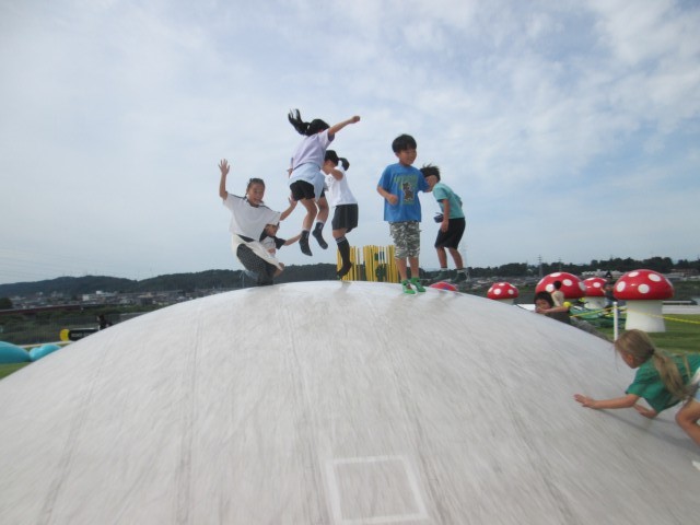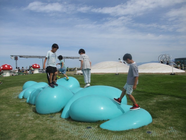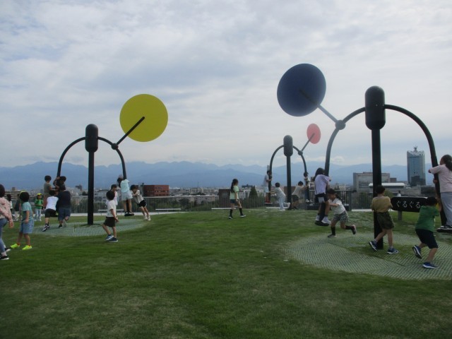 富山県美術館のオノマトペの屋上で体を動かしました。