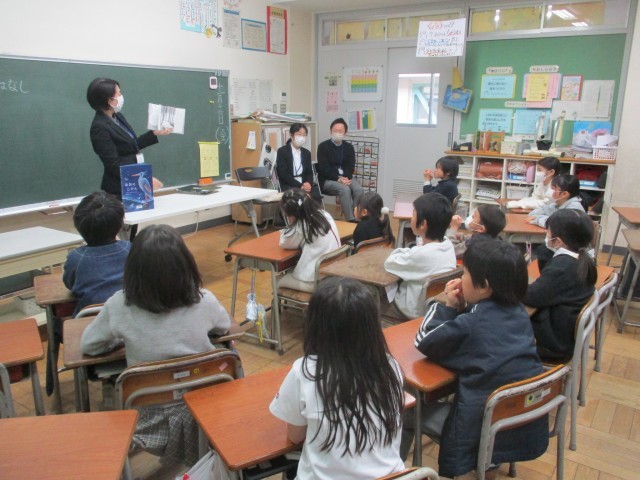 富山市立図書館新庄分館から本の紹介に来てくださいました。これからも多くの本に親しんでほしいものです。