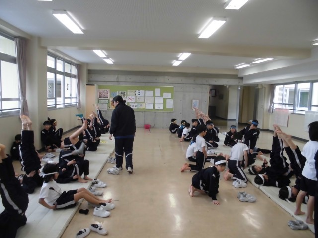 体育でマット運動を行いました。子供たちは、2年生の時よりもっとたくさんの技ができるように、一生懸命練習していました。