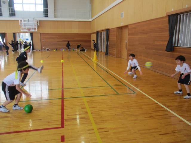 1月23日(金)2年生 体育科「ボール蹴り遊び」