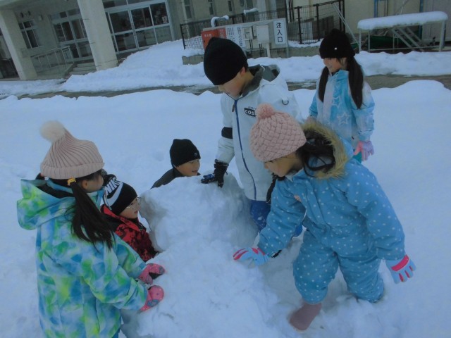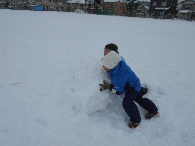2回目の雪遊びをしました。そり遊びや雪だるま作り、雪合戦などをして遊びました。