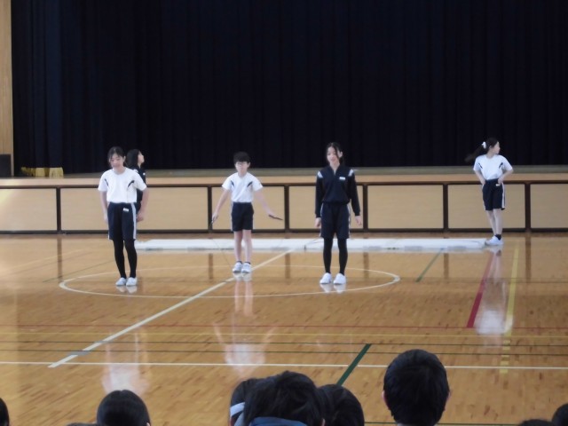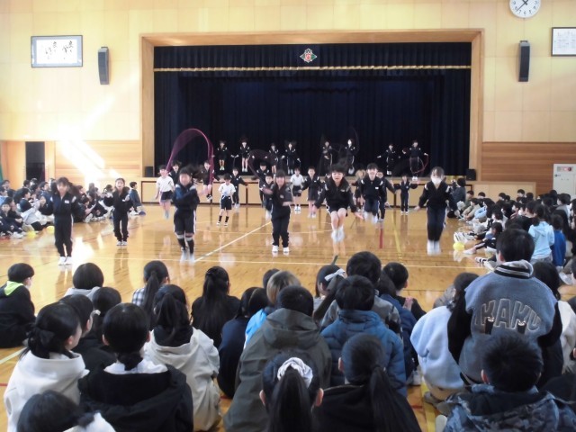 集会委員会が企画した全校集会が開催されました。今回は、特技発表会ということで、立候補した子供たちが特技を披露しました。なわとび、マット、ダンス等、1分という限られた時間の中で工夫した発表が多くみられました。