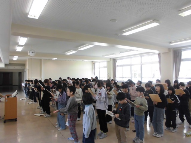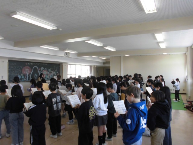 3年生みんなで歌練習をしました。卒業式当日は参加することができませんが、予行練習に参加し、低音部を歌うことになっています。6年生に「ありがとう・おめでとう」の気持ちが届くよう、一生懸命練習している子供たちです。