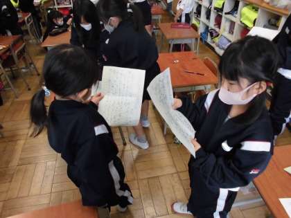 友達にインタビューをした内容を文章にまとめ、互いに読み合う活動を行いました。友達が今一番楽しいことを知ることができました。