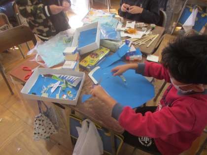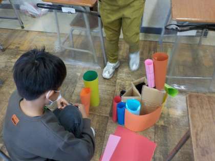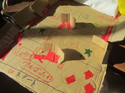 おもちゃを作り上げたグループは、「何個いるかな?」「どんなルールにする?」「点数があったら楽しいかも」などと、遊び方を相談し始めています。