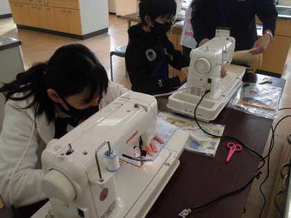 今日はクッションカバーをミシンで縫いました。ミシンの操作を復習し、丁寧に針を進めていきました。完成が楽しみです。