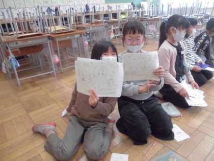今日はビンゴ大会でした。なかなかビンゴにならなかった人もいましたが、最後には全員がビンゴになり、係が用意したイラストの景品をもらっていました。