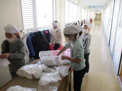 明日の終業式の前に、教室の床、黒板、窓、配膳台、下足箱をきれいにしました。冷たい水に手を入れ、雑巾を絞って、細かいところも友達と協力しながら、丁寧に掃除をしました。「今年一年ありがとう」「来年もよろしくね」という気持ちがとても伝わってきました。