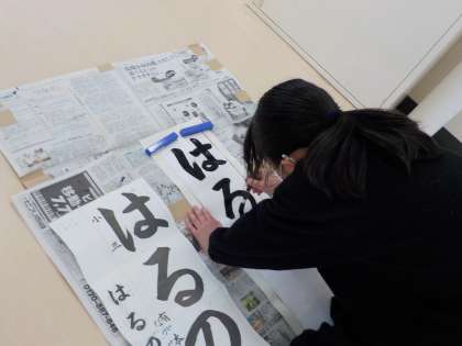 3学期が始まりました。始業式のあと、書初め大会が行われました。一人ひとり、冬休みの練習の成果を発揮しようと、真剣に字と向き合っていました。3年生になってはじめて筆で字を書いた子どもたちも半年間で慣れ、すてきな字をみることができました。