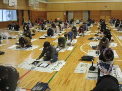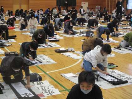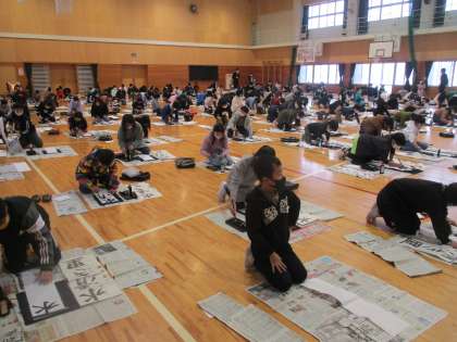 今年は5・6年生が体育館で書初大会を行いました。一筆一筆に心を込めて、丁寧に書くことができました。