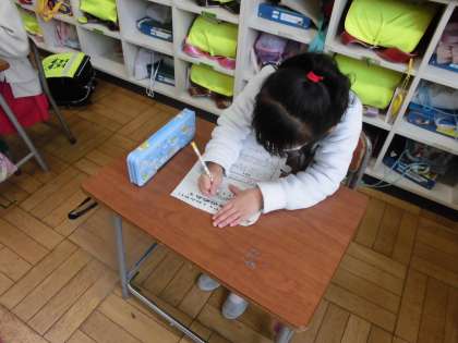 3学期のめあてをたてました。2年生に向けてレベルアップしようと話すと、姿勢に気を付けたり、きれいな字を書いたりするなど、めあてをたてている様子からも成長を感じました。