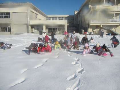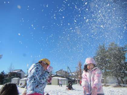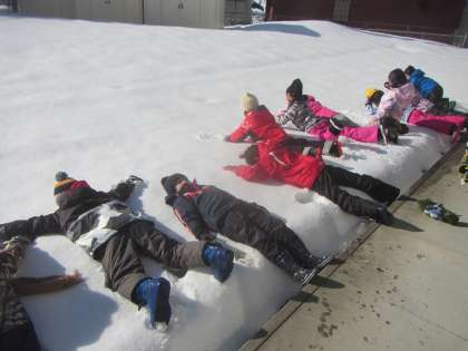 今日は気温が低かったので、さらさらの雪を投げて遊んだり、人間スタンプをしたり、寝れる部屋を作ったり…思いきり楽しみました。