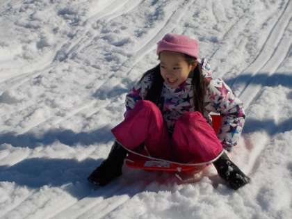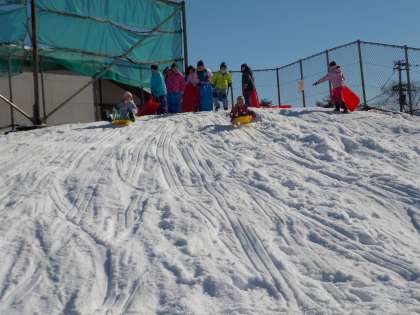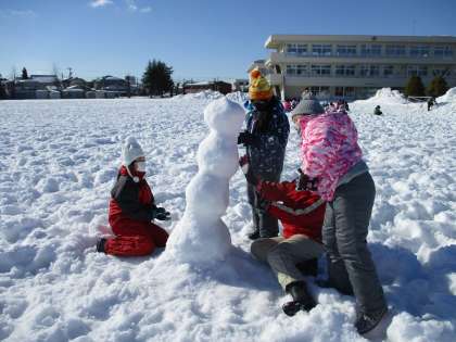 たくさんふった雪で歩くのが大変だと言いながらスキー山まで歩き、そりすべりを楽しんだ子や、大きな雪だるまを作ろうと3人で力を合わせて転がしている子、自分が好きなキャラクターを作ろうとしている子など、雪での遊び方を自分で見つけて楽しんでいました。