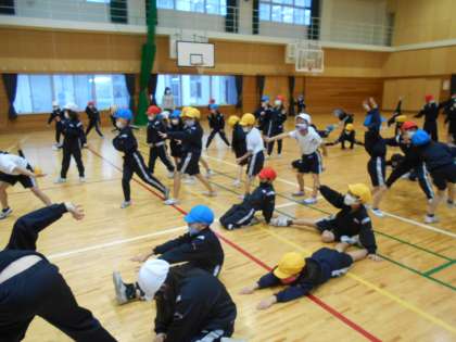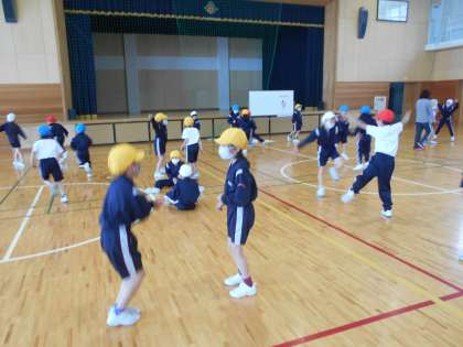 友達の動きを真似る「ミラーごっこ」や、お気に入りのポーズを決める「だるまさんがころんだ」など、どの子も体をいっぱいに動かしています。