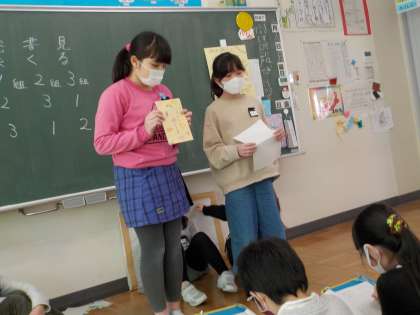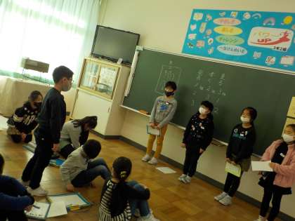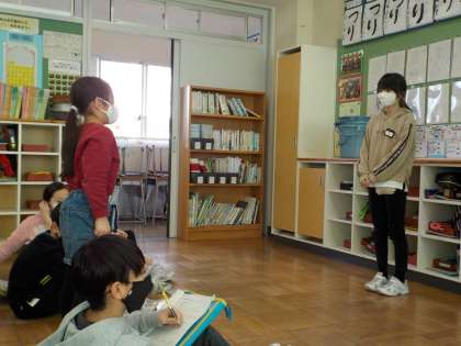 国語科では「つたえよう わたしのお気に入り」の学習で、3年生での学習を振り返り、思い出を発表しました。学年の友達の前で、声の強弱や間の取り方など、話し方に気を付けながら話をしていました。
